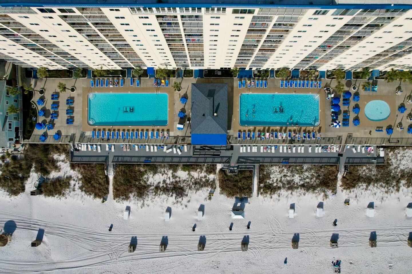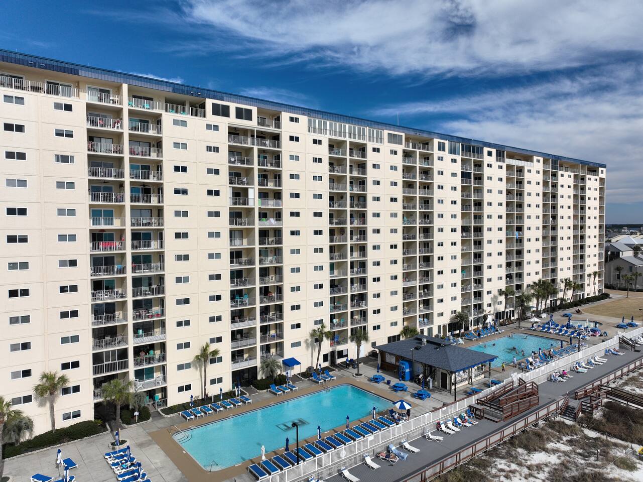 Guest will have access to all pools, hot tub, grilling pavilion, play yard, corn holes, sun bathing deck, workout facilities, billiards room, tiki bar & grill, direct and exclusive beach access is just steps away.