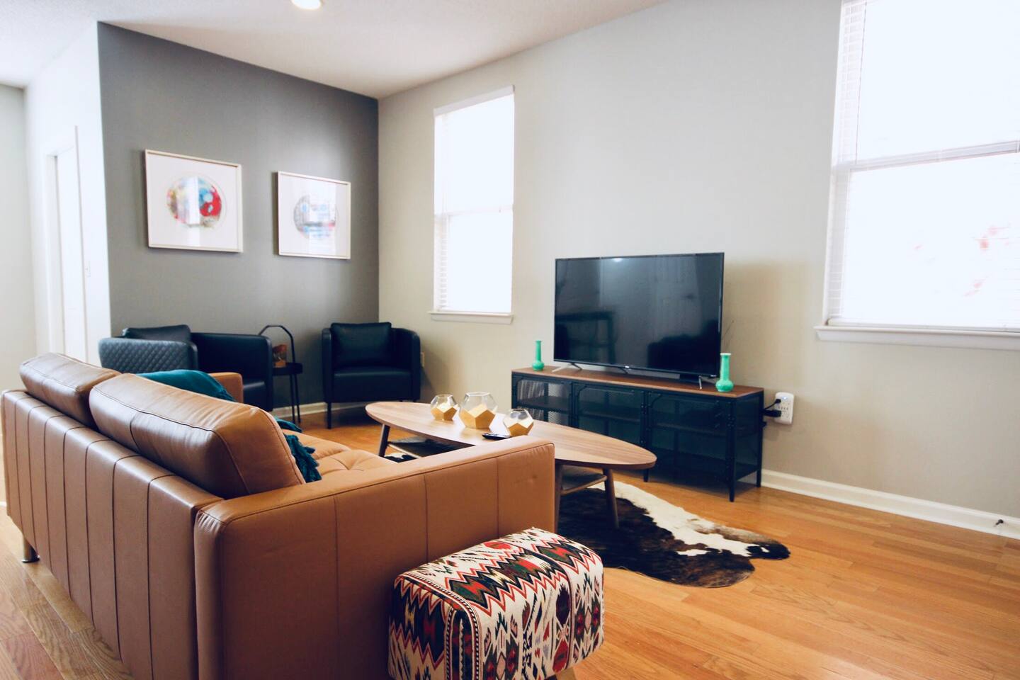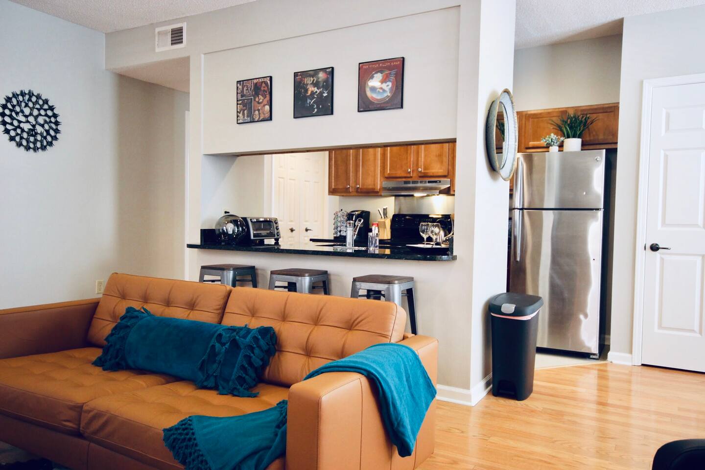 Welcome to your stylish home-away-from-home in Downtown Memphis! This chic condo combines modern comfort with homey amenities to ensure a memorable stay. **What you'll enjoy:** **FREE Secured Parking: Convenience and peace of mind with your very own designated parking spot. **Climate Control: Stay comfortable year-round with central heating and air conditioning. **Sleeping Arrangements: Rest easy in two queen-sized beds, and enjoy the flexibility of two full bathrooms. A couch is available, though it does not pull out. **Entertainment: Relax and unwind. Smart TVs are located in the living room and both bedrooms. Enjoy a Netflix subscription, and easily access other streaming services like Sling or Amazon Prime with your own login credentials. **Fully Equipped Kitchen: Cook up your favorite meals in the modern kitchen, complete with a stove range, microwave, and refrigerator. **Coffee: A Keurig coffee maker that has both a K-Cup and drip option. K-cups provided. **Convenience: An iron and ironing board are provided for your convenience. **Private Patio: Enjoy some fresh air and relaxation on your own private outdoor space. This condo is perfect for both vacation getaways and corporate stays, offering a blend of comfort, style, and convenience right in the heart of Memphis.